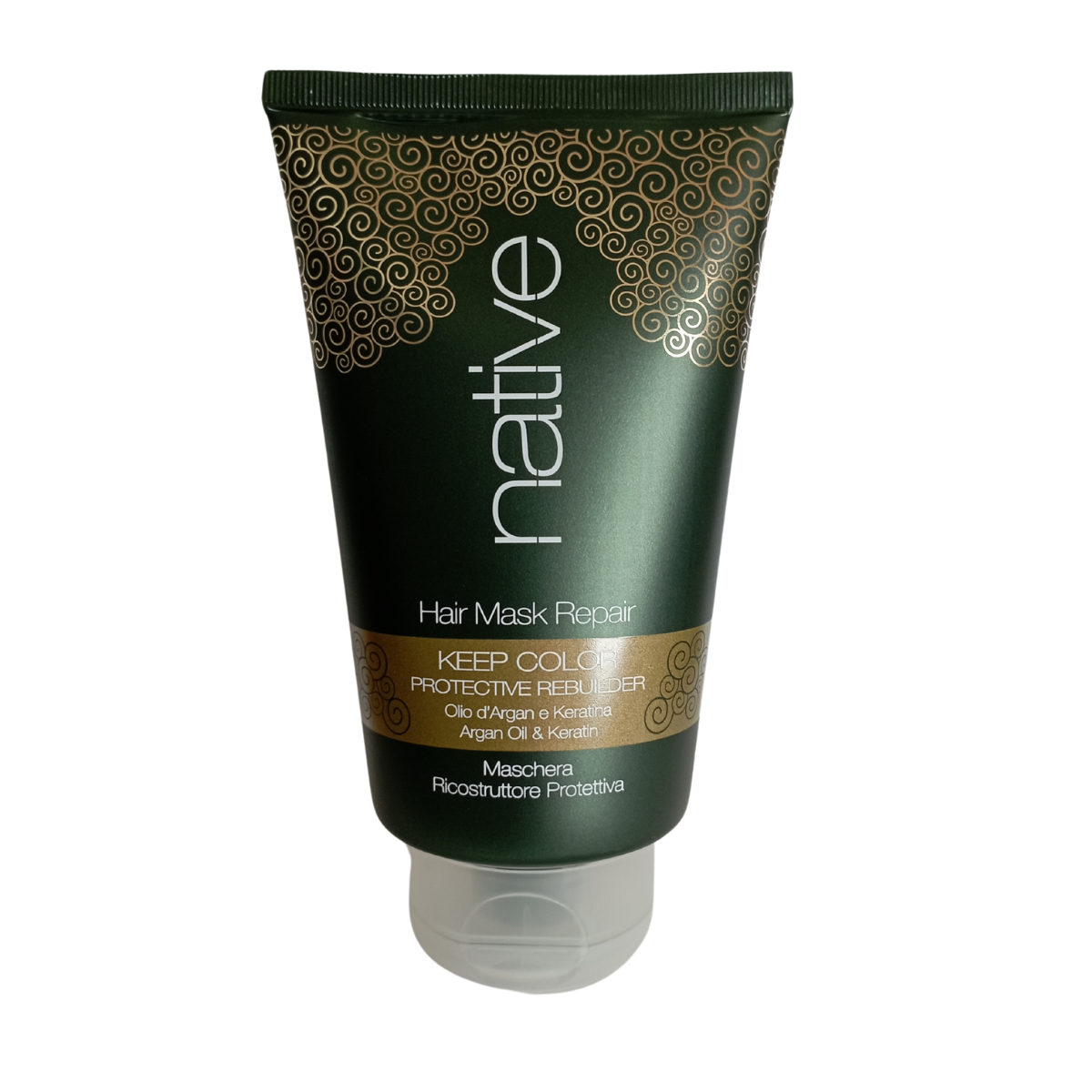 Restaure e revitalize o seu cabelo com a Máscara Reparadora da Native com Óleo de Argan e Queratina. Esta máscara intensa e nutritiva foi desenvolvida para cabelos danificados, secos ou quimicamente tratados, oferecendo uma hidratação profunda e reparação completa. Com uma fórmula enriquecida que penetra nas fibras capilares, esta máscara fortalece, repara e previne a quebra, devolvendo ao cabelo a sua elasticidade e suavidade naturais. Use-a para obter um cabelo mais saudável, brilhante e renovado, com resultados visíveis desde a primeira aplicação.