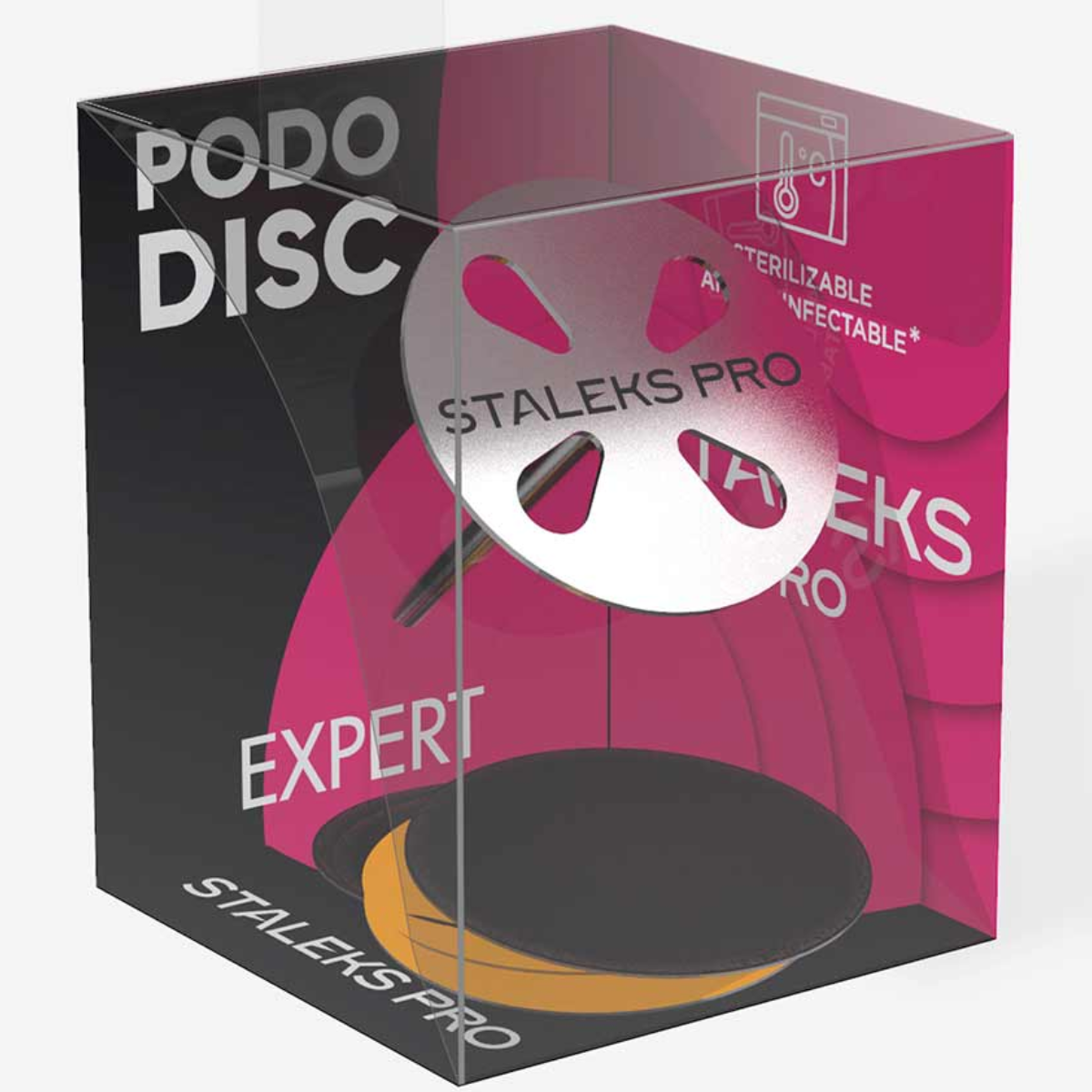 Este conjunto contém um disco de pedicura Pododisc Staleks Pro L e um set de 5 limas descartáveis com grão 180 (25 mm).