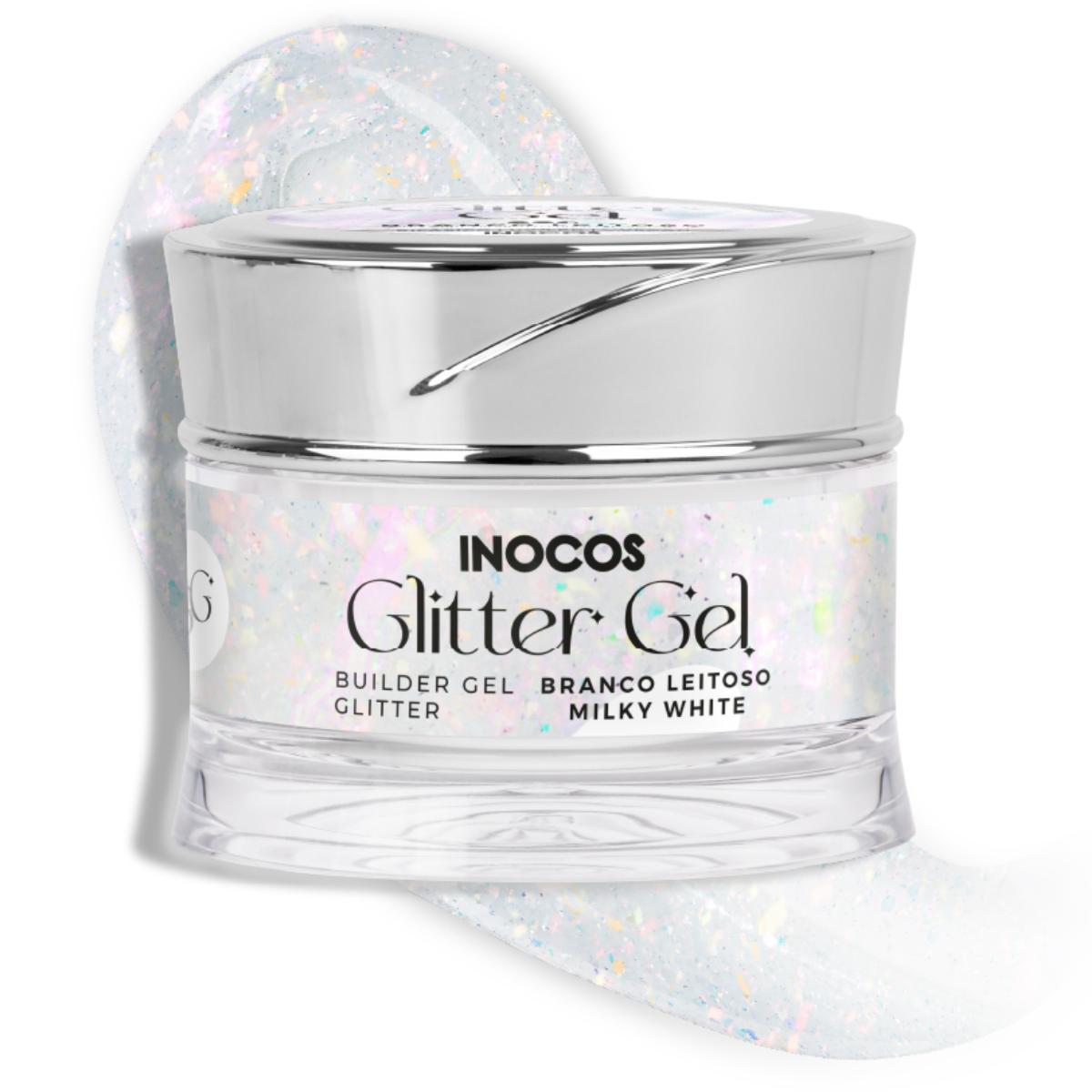 Arrasa com o Glitter Gel INOCOS Branco com Glitter de média viscosidade. Longa duração, sem aquecimento ou descolamento.