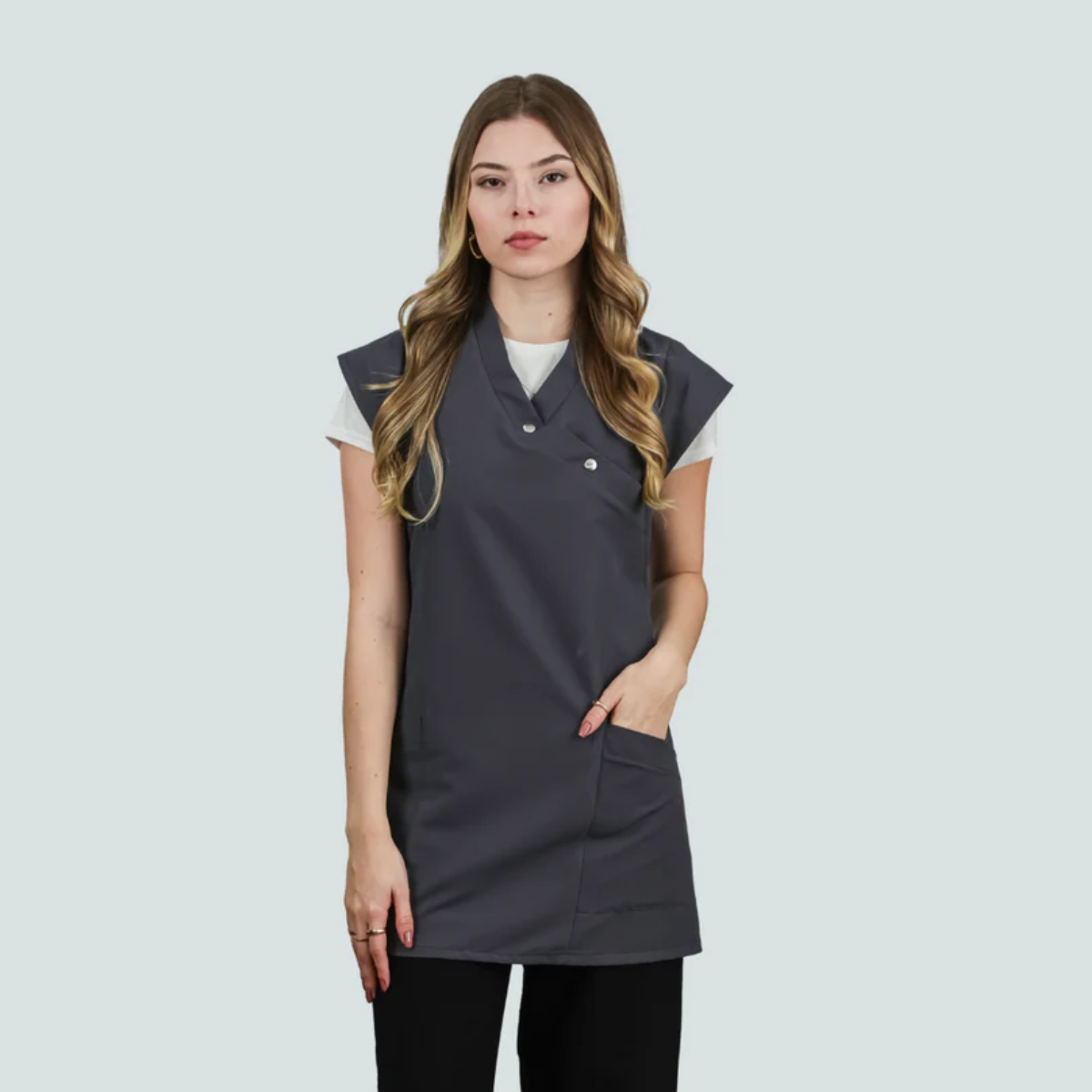 Ideal para profissionais de estética, cabeleireiro, saúde, receção, comércio ou hotelaria que procuram um uniforme prático, confortável e profissional.